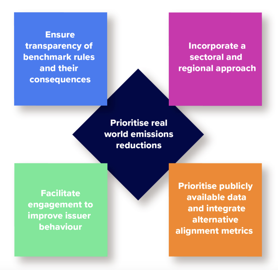 Iancu Daramus, Director of Climate-aligned Investing at Fulcrum Asset Management said: “Many net-zero solutions risk hitting the emissions target whilst missing the impact mark. What matters is not to reduce, on paper, an index’s average carbon footprint, but to unlock capital for companies showing ambition and progress in decarbonisation.“Achieving these real-world outcomes requires transparent data, backed by engagement and reflecting the nuances of sectors and regions. Fulcrum was delighted to contribute to the working group for this report, which provides a much-needed intervention around net-zero investing.” The five key principlesPrioritise real world emissions reductions. Benchmark design should be informed by the incentives they would create in practice. To the extent possible, net zero benchmarks should favour avenues to enhance real world ’organic’ emissions reductions, over ’paper decarbonisation’.Ensure transparency of benchmark rules and their consequences. Index providers should grant full disclosure on how constituents of a benchmark are selected and weighted and disclose any unique features to limit the ‘black box’ nature of the methodologies.Incorporate a sectoral and regional based approach.Benchmarks should recognise that different speeds of adjustment are required for different sectors and regions. They should adopt a science-based approach to emissions reductions in high-emitting sectors to ensure a just transition.Prioritise publicly available data and integrate alternative alignment metrics.Net zero benchmarks can make use of a range of alternative metrics that better reflect the transition potential and enhance real world emissions reductions. Incorporating forward-looking metrics can facilitate lower and more predictable portfolio turnover relative to an index using financed emissions alone.Facilitate engagement to improve issuer behaviour.Net zero benchmarks should maximise their opportunities for engagement to improve issuer behaviour. While these would differ across asset classes, this can be done, for example, by embedding climate performance-related signals into the construction methodology and communicating these to potential benchmark constituents. If you’d like to take part in our working groups and be the first to see insights and analysis, why not speak to our investor relations manager today to find out more about becoming a part of IIGCC. | All opinions expressed are those of the author and/or quoted sources. investESG.eu is an independent and neutral platform dedicated to generating debate around ESG investing topics.