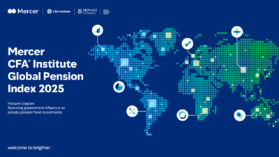 Mercer, a business of Marsh McLennan (NYSE: MMC) and a global leader in helping clients realize their investment objectives, shape the future of work and enhance health and retirement outcomes for their people, and CFA Institute, the global association of investment professionals, today released the 17th annual Mercer CFA Institute Global Pension Index (MCGPI).
