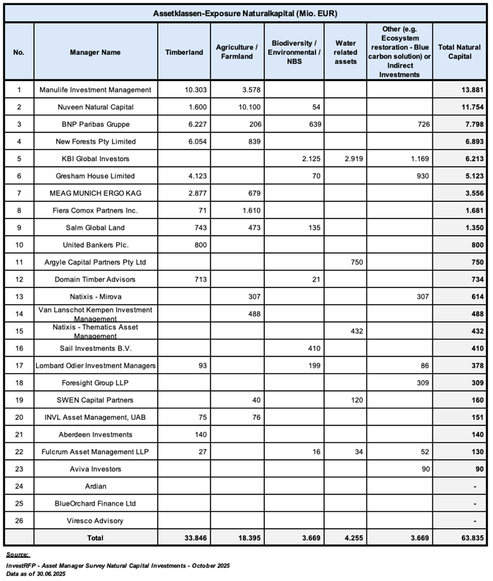 Mit den teilnehmenden Asset Managern konnte der Großteil der weltweit agierenden Naturalkapital Manager in der Auswertung berücksichtigt werden.