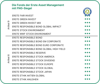 FNG-Siegel: 18 Fonds der Erste Asset Management mit Bestnote ausgezeichnet